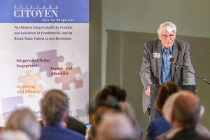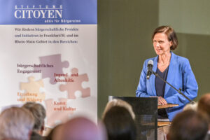 Darauf bezog sich der Frankfurter Oberbürgermeister Mike Josef in seinem Grußwort und erklärte: „Demokratie lebt davon, dass jede Bürgerin und jeder Bürger gehört wird. Dass man daran glaubt und weiß, dass man gemeinsam etwas bewirken kann – und es dann auch tut. Demokratie ist mehr als eine Staatsform – sie ist eine Haltung. Eine Einladung zum Dialog. Dass sich die Stiftung CITOYEN genau dafür stark macht, ist von unschätzbarem Wert.“