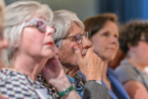 Nicole Broder machte deutlich, wie sehr die aktuellen Mittelkürzungen die Arbeit der Bildungsstätte Anne Frank erschwert, die insbesondere Jugendliche für alle Formen der Menschenfeindlichkeit zu sensibilisieren sucht. Felix Hanschmann schilderte, welche Gefahr die Einschüchterungsstrategien der AfD gegenüber Lehrer:innen, Politiker:innen und gemeinnützigen zivilgesellschaftlichen Organisationen darstellen.