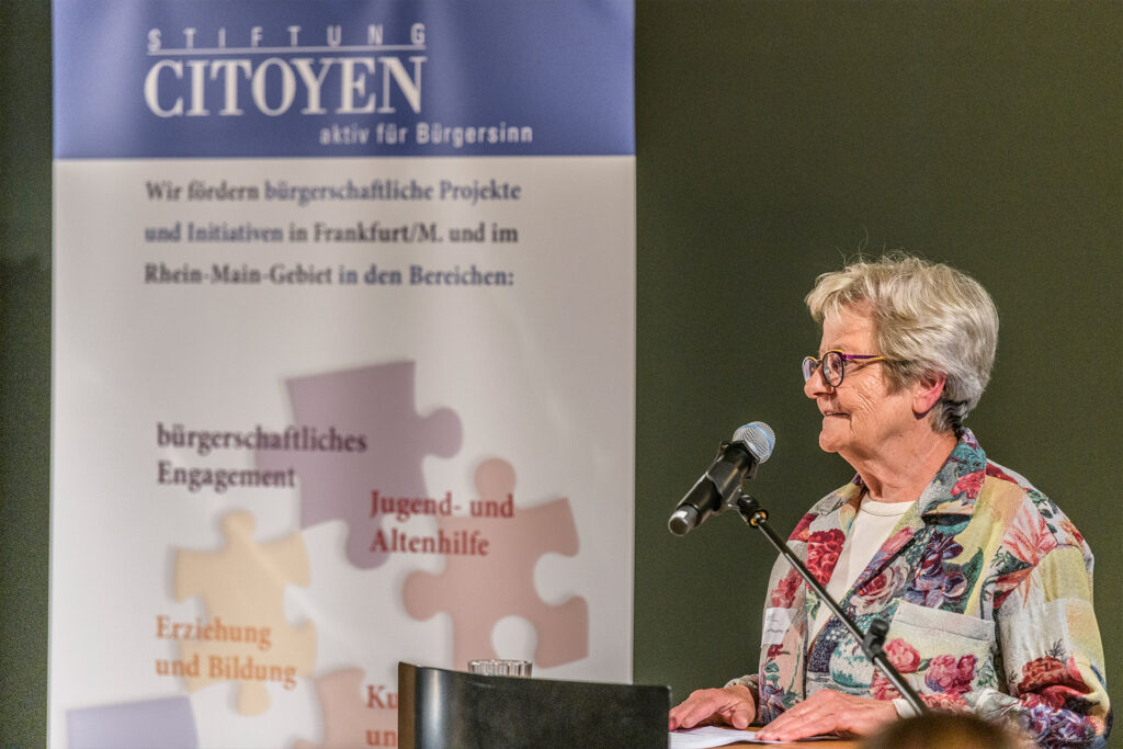 Die Bürgerstiftung CITOYEN will Anstifterin zu mehr Bürgerengagement im Rhein-Main-Gebiet sein. Sie fördert Projekte in den Bereichen Jugend- und Altenhilfe, Erziehung und Bildung, Wissenschaft und Forschung, Kunst und Kultur, Umwelt- und Naturschutz. Mit ihrem „CITOYENNE – Preis für Bürgersinn“ wird alle 2 Jahre wegweisendes bürgerschaftliches Engagement ausgezeichnet.